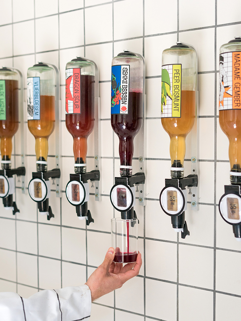 The fruit butchers of Roze Bunker tackle the sticky problems of the food industry with kilos of pure fruit and fresh herbs that are also subject to waste. Why move water when it just comes out of the tap? By adding water only at the last minute, it saves a lot of transportation volume of an average soft drink brand. 1 bottle of Rozebunker is about equal to 1 crate of soda, This saves storage, lots of hauling and mountains of plastic.